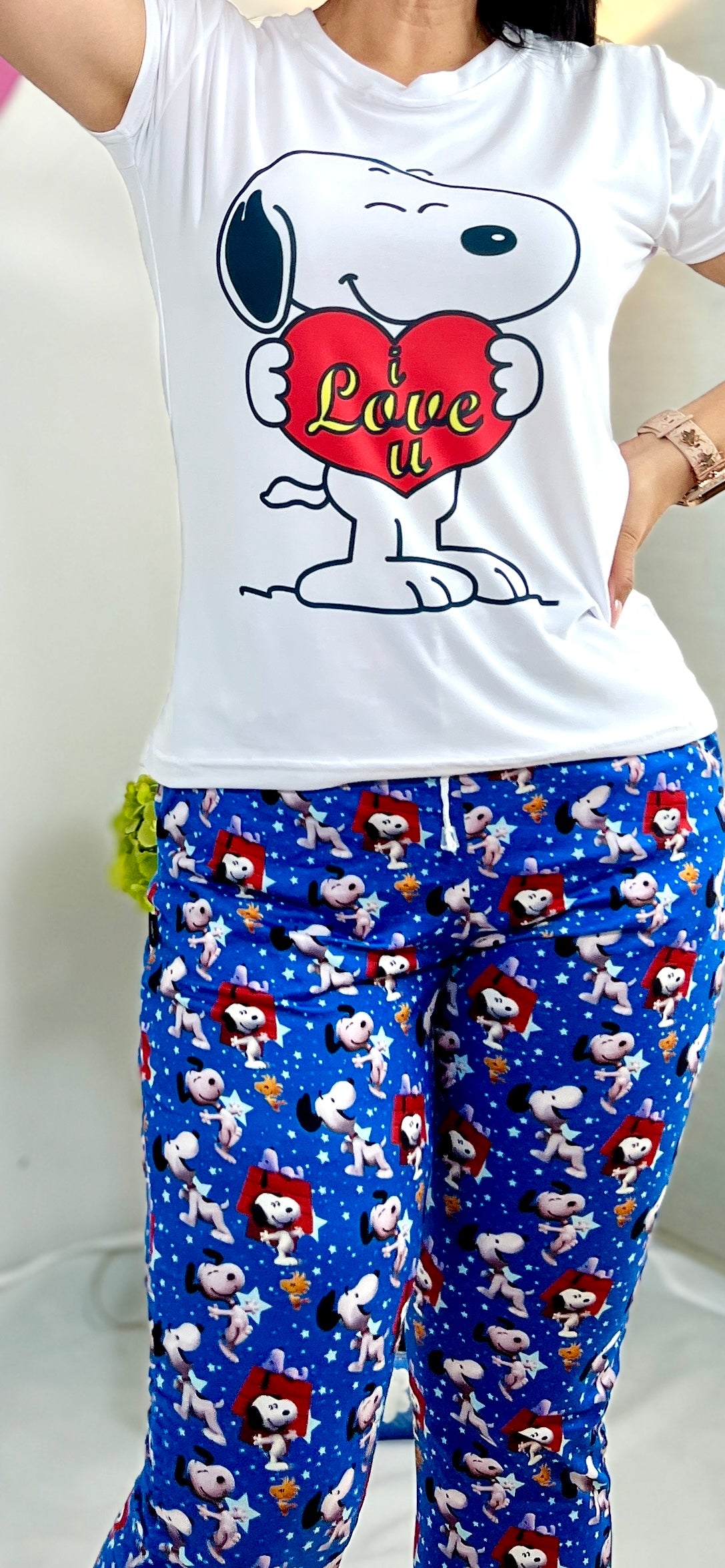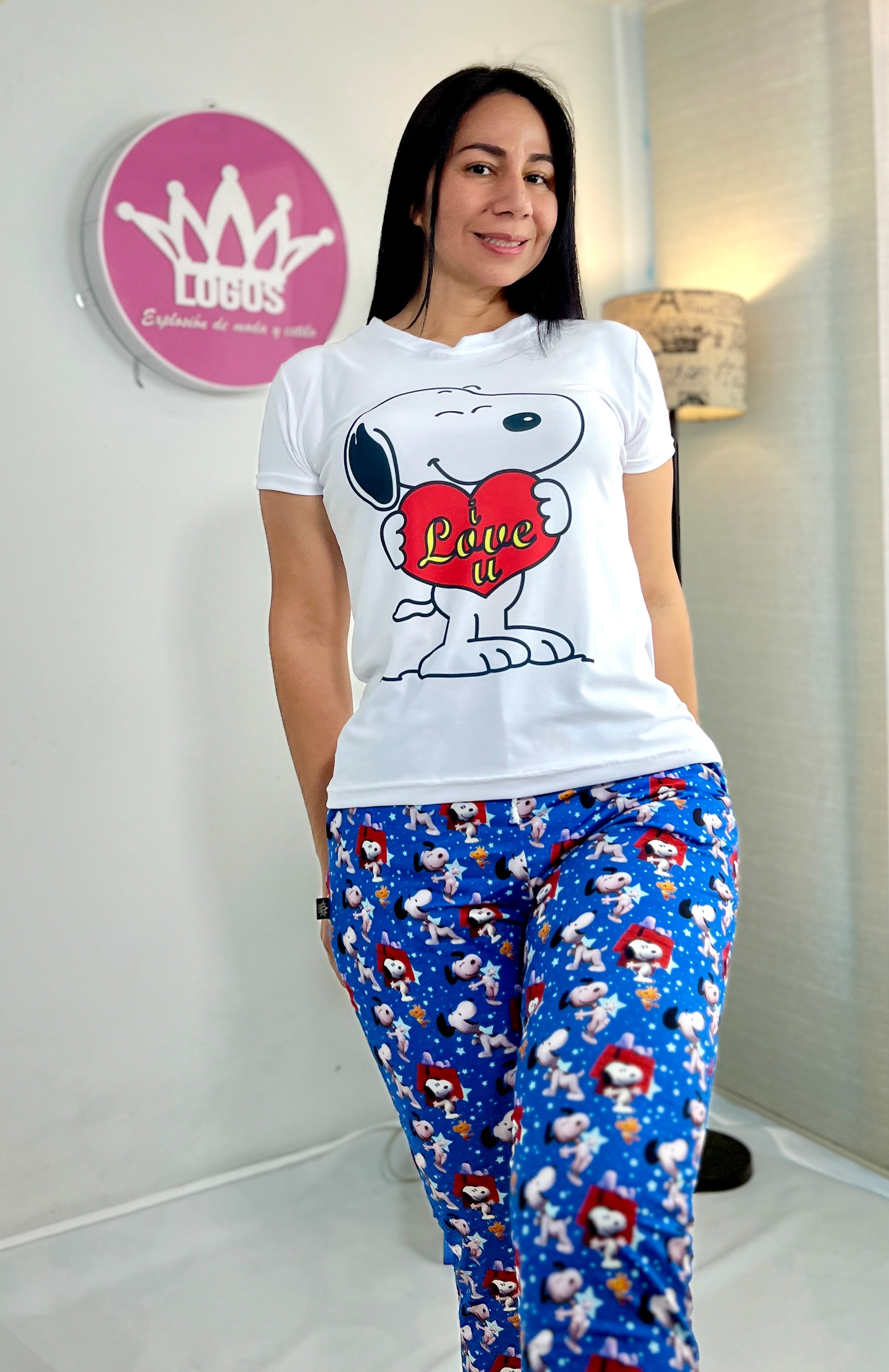 Nuestra pijama de Snoopy en tono azul profundo combina el encanto clásico de este personaje amado por generaciones con la comodidad de un diseño moderno: blusa básica y pantalón estilo jogger que se ajusta perfecto y te acompaña en tus mejores momentos de descanso.