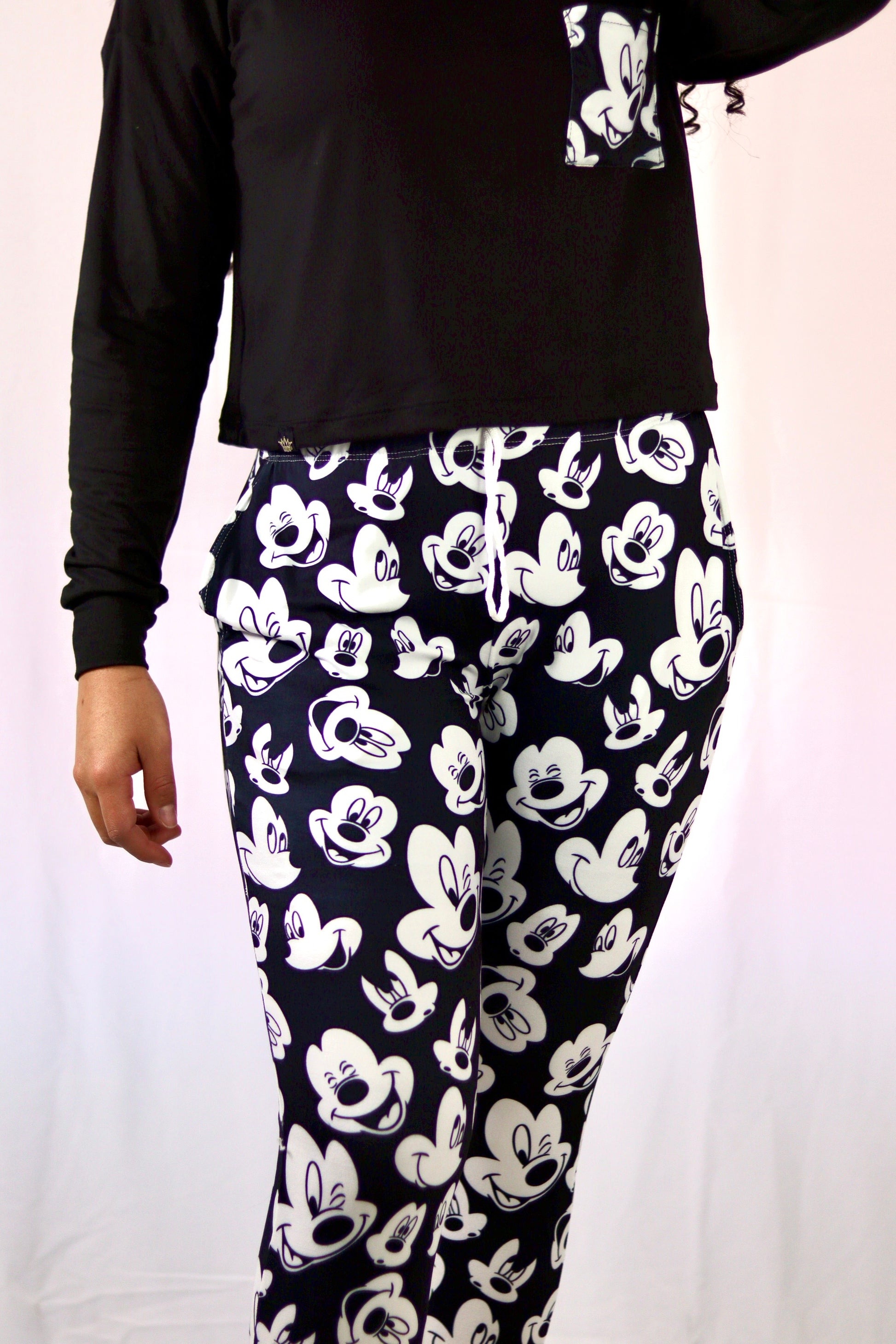 Pijama Mickey Mouse Blanco y Negro – Estilo Jogger en Tela Brush